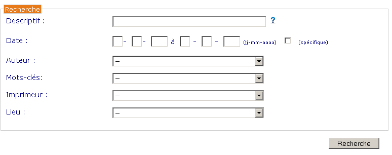 Ce champ permet de faire apparaître la liste de tous les mandements publiés par un imprimeur en sélectionnant le nom de cet imprimeur dans la liste.