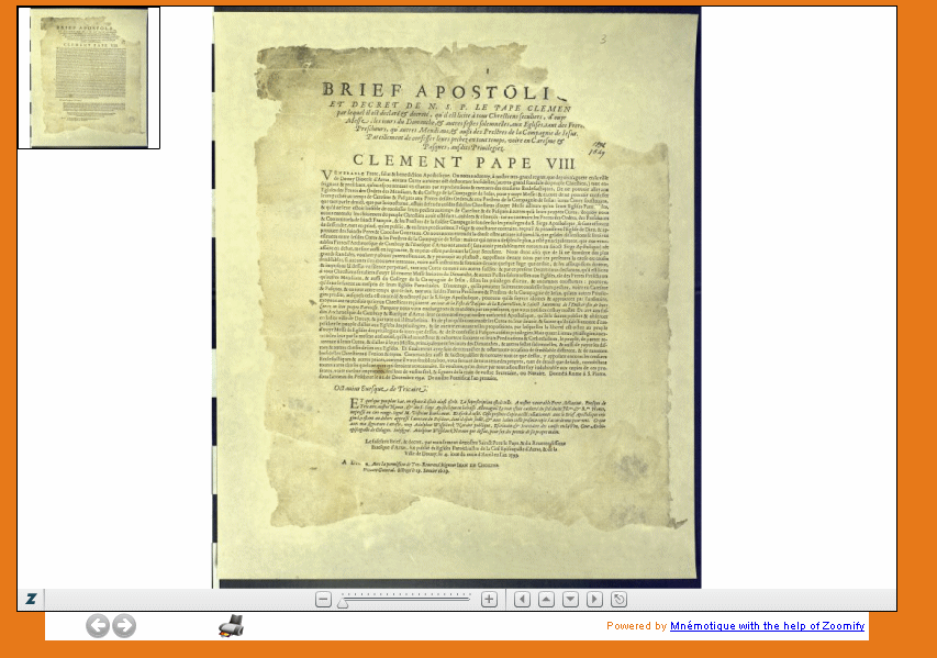 Il se peut qu’un document comporte plusieurs images. Dans ce cas, en dessous de l’image, un bouton de navigation permet de visionner l’image suivante ou précédente attachée au même document. Le bouton « Fermer » renvoie à la fiche complète du mandement.
