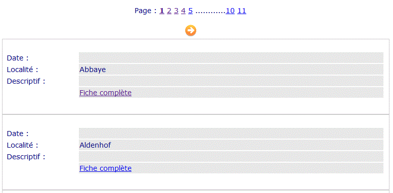 En haut de cette page est affiché le nombre de pages obtenues pour cette recherche, ainsi qu'un bouton de navigation « précédente » et « suivante ».